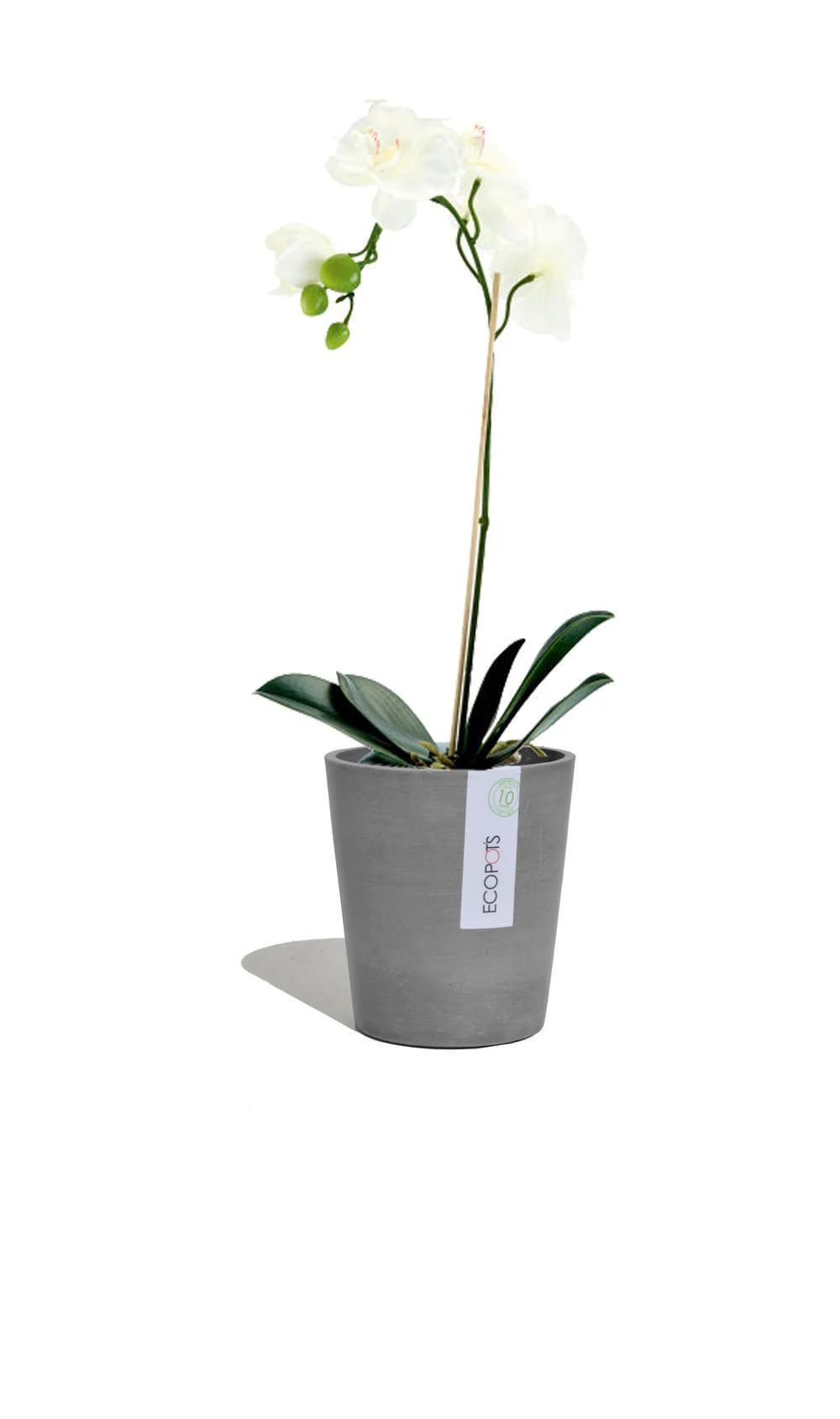 Die Blumentöpfe der Marke ECOPOTS setzen neue Maßstäbe im Bereich der Pflanzgefäße. Höchste Ansprüche in Funktionalität, Qualität, Langlebigkeit und Design finden hier zusammen mit einem einzigartig ausgeführten Nachhaltigkeits-Konzept. Die ECOPOTS bestehen nämlich aus Recyclingkunststoff und anderen umweltschonenden Bestandteilen wie Steinpulver und sind gleichermaßen wieder recyclingfähig, d.h. nach Ende ihrer Lebenszeit können die ECOPOTS wieder dem Recyclingkreislauf zugeführt werden und erneut zur Herstellung von Produkten aus Recycling-Kunststoff dienen. Darüber hinaus bestechen die ECOPOTS mit weiteren maßgeblichen Eigenschaften. Ultraleicht, frost- und bruchsicher, UV-beständig und mit zeitlosem Design sowie einer handgearbeiteten, völlig nahtlosen und absolut natürlich wirkenden steinähnlichen Oberfläche sind sie die bewusste Alternative zu den sonst im Handel erhältlichen Kunststoff-Blumentöpfen. Darüber hinaus sind die ECOPOTS flexibel einsetzbar, denn jeder ECOPOTS Blumentopf ist durch einen Stöpsel im Boden sowohl für den Einsatz im Innen- als auch im Außenbereich geeignet. Bei dem Orchideentopf Morinda handelt es sich um einen Blumentopf mit stilvoller, runder Formgebung und besonders hohem Boden, speziell angepasst an die besonderen Bedürfnisse von Orchideen.