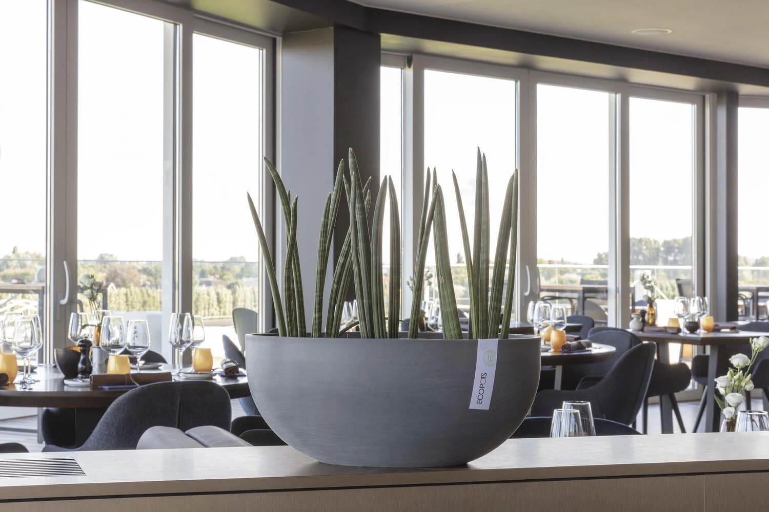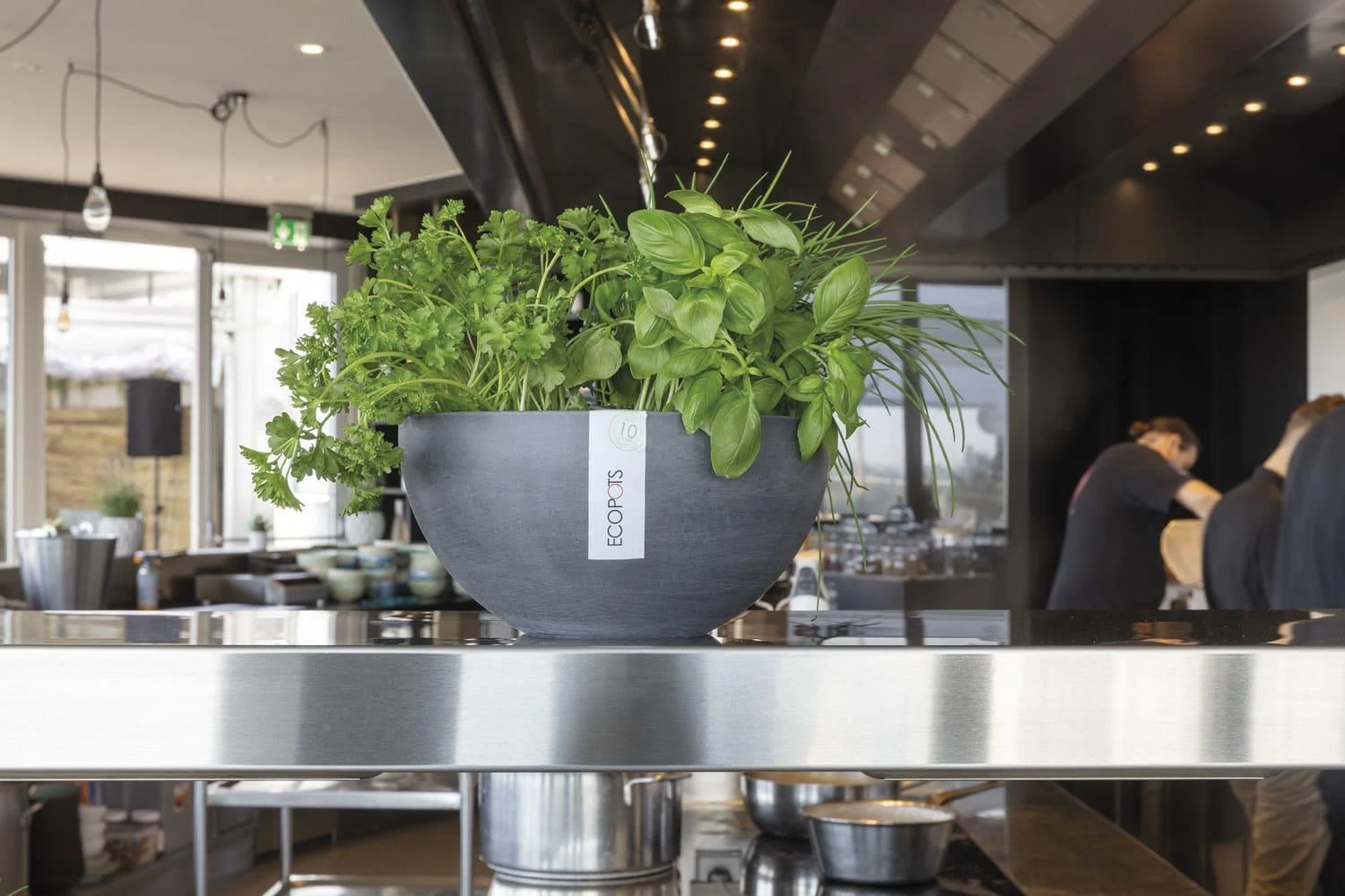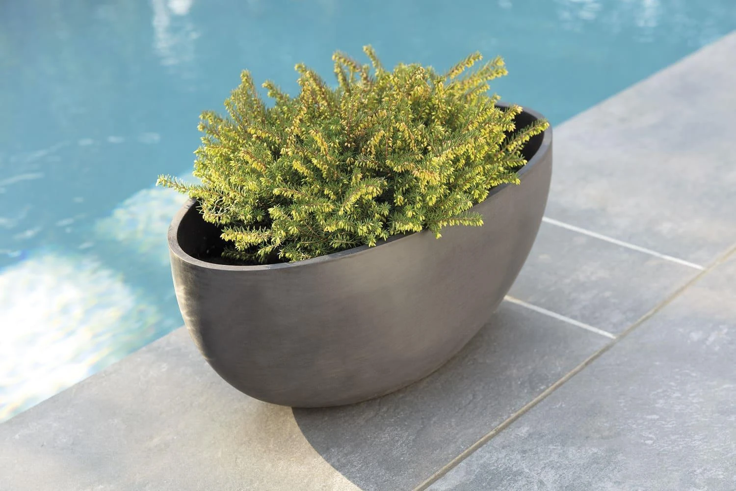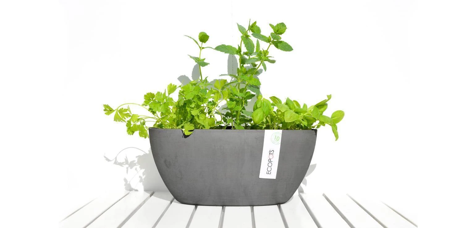 Die Blumentöpfe der Marke ECOPOTS setzen neue Maßstäbe im Bereich der Pflanzgefäße. Höchste Ansprüche in Funktionalität, Qualität, Langlebigkeit und Design finden hier zusammen mit einem einzigartig ausgeführten Nachhaltigkeits-Konzept. Die ECOPOTS bestehen nämlich aus Recyclingkunststoff und anderen umweltschonenden Bestandteilen wie Steinpulver und sind gleichermaßen wieder recyclingfähig, d.h. nach Ende ihrer Lebenszeit können die ECOPOTS wieder dem Recyclingkreislauf zugeführt werden und erneut zur Herstellung von Produkten aus Recycling-Kunststoff dienen. Darüber hinaus bestechen die ECOPOTS mit weiteren maßgeblichen Eigenschaften. Ultraleicht, frost- und bruchsicher, UV-beständig und mit zeitlosem Design sowie einer handgearbeiteten, völlig nahtlosen und absolut natürlich wirkenden steinähnlichen Oberfläche sind sie die bewusste Alternative zu den sonst im Handel erhältlichen Kunststoff-Blumentöpfen. Die Blumenschale Sofia mit ihrem schlichten, zeitlosen Design ist mit ihrer ovalen Form ideal geeignet für schmale Fensterbänke. Die Breite von 30 cm lässt die Bepflanzung dennoch so prachtvoll wirken wie in einem runden Topf mit entsprechendem Durchmesser. Ein Reservoir hilft bei der Bewässerung und schützt die Pflanze gleichzeitig vor Übergießen.