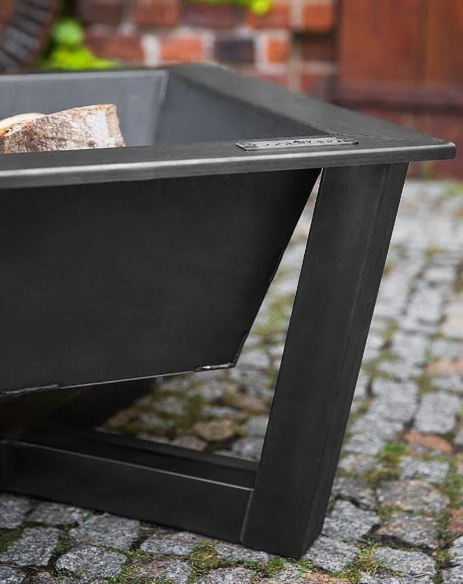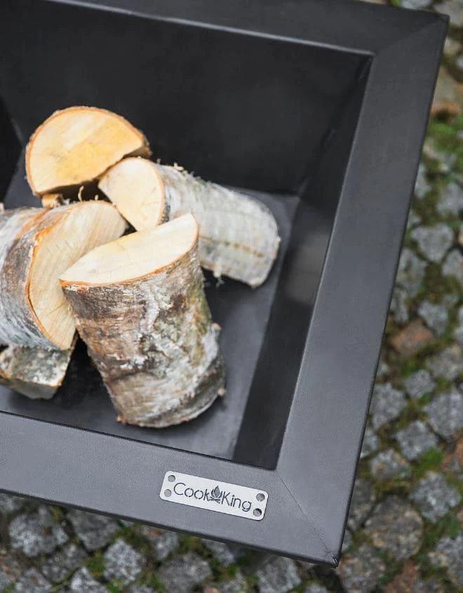 Die handgearbeiteten Feuerschalen von CookKing sind genau die richtigen Feuerstellen für stimmungsvolle Abende im Garten oder auf der Terrasse. Sie dienen als Wärmequelle und, ergänzt mit dem passenden Zubehör, als Grillstelle sowie gleichermaßen als flammender Blickfang in Ihrem Freizeitrefugium. Aus hochwertigem, langlebigem 2mm starkem Rohstahl von Hand gefertigt und mit stimmigem Design und liebevollen Details wie dem genieteten Label lassen sie das Herz eines jeden höher schlagen, der das Flair und Ambiente eines offenen Holzfeuers liebt. Die Feuerschale Brasil mit ihrer quadratischen Grundfläche, der ausdrucksstarken, kantigen Formgebung steht stabil und sicher auf dem besonders massiven, kreuzförmigen Gestell, welches dafür sorgt, dass der Boden unter der Feuerschale unversehrt bleibt und somit die Natur geschont wird. Die vertiefte Form sorgt für größeres Fassungsvermögen für Brennholz und das Plus an Sicherheit auch bei stärkerem Wind. Besonders empfehlenswert ist die Kombination der Feuerschale mit Deckel. Diese sinnvolle Ergänzung verhindert zuverlässig das Herauswehen von Asche.