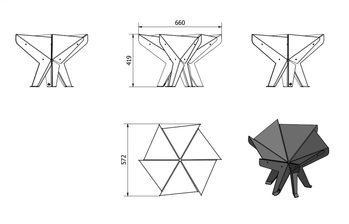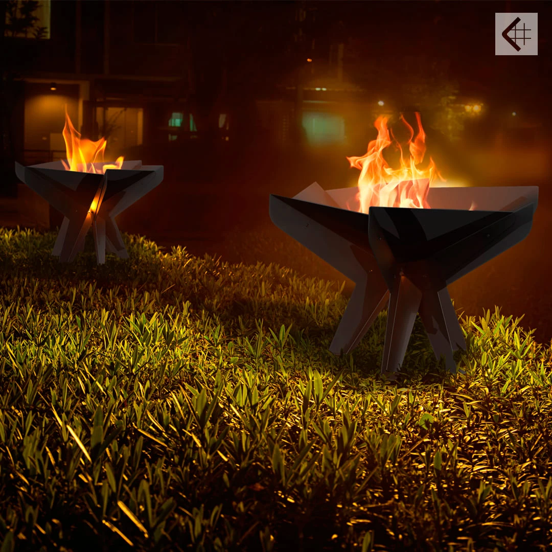 Mit ihrem sechseckigen, an eine Windmühle erinnernden Grundriss und einem besonderen Twist, der sich aus der speziellen Anordnung der einzelnen Segmente ergibt, hebt sich die Feuerschale HEX auf gekonnte Weise von der breiten Masse der gängigen handelsüblichen Produkte ab. Der perfekt in das moderne Design integrierte Sockel hebt die Feuerstelle auf ein rückenschonenderes Niveau und sorgt zugleich für eine Schonung des darunter liegenden Bodens und somit, bei Platzierung des Feuerkorbes auf dem Rasen, der Natur. Der Aufbau der zerlegt gelieferten Gartenfeuerstelle ist kinderleicht und in wenigen Schritten schnell und einfach durchgeführt.