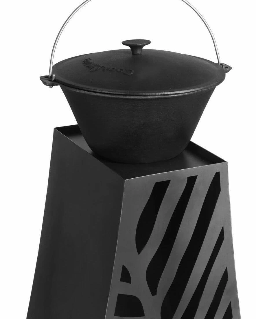 Die handgearbeiteten Gartenkamine der Marke CookKing sind wie gemacht, um in Ihrem Garten einen gemütlichen, warmen Platz zu schaffen, an dem jeder gern verweilt. Der Gartenkamin Lima wird aus hochwertigem, langlebigem 1,5 mm starkem Rohstahl gefertigt. Sein ausdrucksstarkes Design mit Cutouts in Blattform und runder Feuerraumöffnung macht den Gartenkamin Lima zu einem zentralen optischen Ankerpunkt in Ihrem persönlichen Gartenrefugium und lässt das Herz eines jeden höher schlagen, der das Flair und Ambiente eines offenen Holzfeuers liebt. Auf der Deckplatte kann in z.B. Topf oder Pfanne (nicht im Lieferumfang) eine leckere Mahlzeit gegart bzw. warmgehalten werden.
