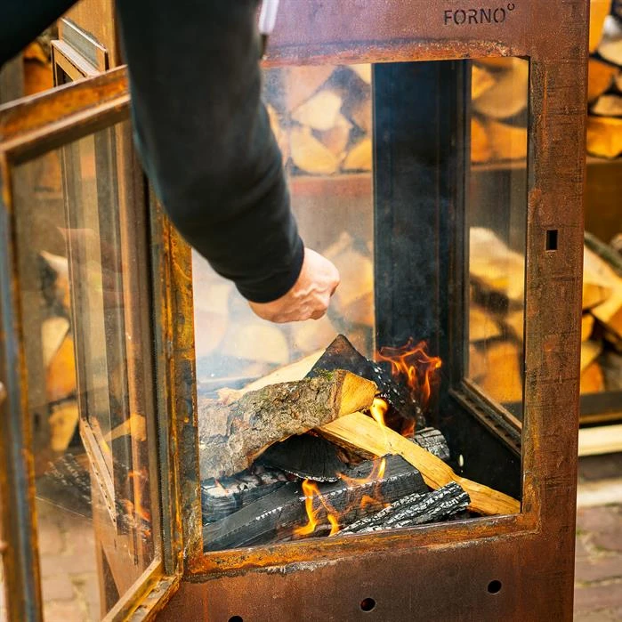 Die soliden Gartenkamine der Premium-Marke FORNO sind wie gemacht, um in Ihrem Garten einen warmen Platz zu schaffen, der viel Gemütlichkeit ausstrahlt und zum Verweilen und Entspannen einlädt. Genießen Sie damit wunderbar stimmungsvolle Abende im Garten oder auf Ihrer Terrasse. Aus hochwertigem, langlebigem 3 mm starkem Cortenstahl gefertigt und mit modernem, offenem Design wird der Gartenkamin DIGNA zu einem zentralen optischen Ankerpunkt in Ihrem persönlichen Gartenrefugium und lässt das Herz eines jeden höher schlagen, der das Flair und Ambiente eines Holzfeuers liebt. Der Terrassenofen wird frei aufgestellt, denn er ist 4-seitig verglast, was dem Betrachter eine faszinierenden Rundumsicht auf die im Innneren des Kamines tanzenden Flammen gestattet. Der DIGNA ist in zwei verschiedenen Höhen bei Kaminprofi24.de erhältlich. Ebenfalls in unserem Online Shop erhältlich sind die für den DIGNA passenden Abgasrohre und Regenhaube (sh. Zubehör).