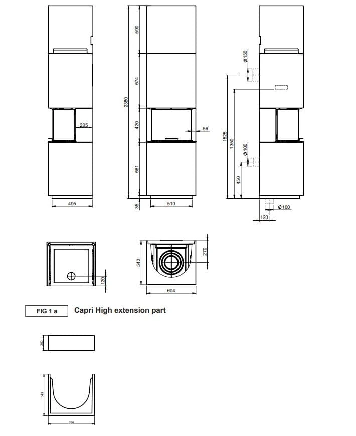 Die Kaminbausätze des norwegischen Herstellers Nordpeis überzeugen durch moderne Designs im angesagten Skandinavischen Stil, den Einsatz hochwertiger Materialien und große Produktvielfalt sowie mit kinderleichtem Aufbau. Der Korpus des Kaminbausatzes Capri High wird gefertigt aus Spezialbeton, dem sogenannten Shape Stone Light, dessen hohe Haltbarkeit und Festigkeit durch eine, in den belasteten Bereichen sogar verstärkte, Faserarmierung erlangt wird. Das Material hat eine leichte Speicherwirkung und sorgt so auch nach dem Abbrand für eine angenehme Strahlungswärme, dank welcher ein nachhaltig wohlig-warmes Raumklima geschaffen wird. Bei dem Kaminbausatz Capri High handelt es sich um einen Bausatz für einen Tunnelkamin mit 2,38 m Höhe und großzügiger 3-seitiger Verglasung, was ihn innerhalb des Interieurs zu einem aufsehenerregenden Blickfang der ganz besonderen Art macht. So wird ein besonderer Platz mit viel optischem Charme geschaffen, der auf wunderbare Weise gemütliche Wärme und Wohnlichkeit verströmt. Der Capri High verfügt über ein zeitloses, reduziertes Design mit klaren Linien und großen Panoramascheiben, die aus gleich mehreren Blickwinkeln einen spektakulären Blick auf das herrlich prasselnde Kaminfeuer in seinem Inneren freigeben. Der besonders exklusive Look dieses imposanten Kamines entsteht nicht zuletzt auch dank der hochschiebbaren Tür, dank derer das Nachlegen von Holzscheiten auf besonders bequeme Weise erfolgen kann. Der Spezialbeton kann darüber hinaus für eine individuelle Gestaltung mit einer Ofenfarbe in Ihrem Wunschfarbton angestrichen werden. Der Anschluss des in diesem 3-Seiten-Kamin verbauten Kamineinsatz Nordpeis Q-24UL kann ganz flexibel oben oder hinten vorgenommen werden.