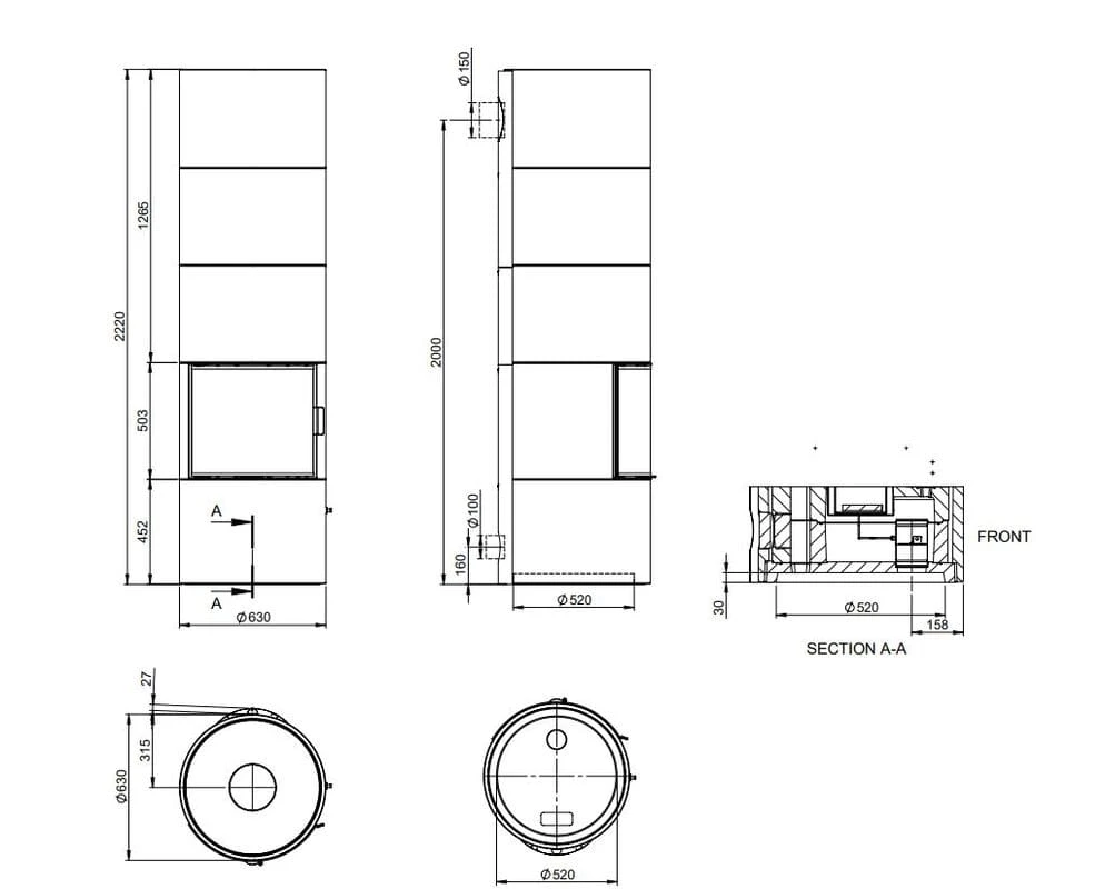 | Rauchrohranschluss (Ø) | 150 mm |