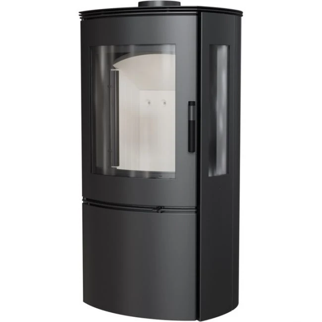 Der Kaminofen FALCON VIEW des renommierten Kaminherstellers kratki überzeugt mit aktuellster Feuerungstechnik, einem zurückhaltenden, modernen Design und starken 10 kW Heizleistung. Mit seiner dezenten Linienführung mit der eckigen, vorn abgerundeten Grundform, lässt sich der FALCON VIEW mühelos in Ihre individuelle Raumgestaltung integrieren. Besonderes Highlight ist die 3-seitige Verglasung mit großzügig geschnittenen Sichtscheiben aus hochwertiger, hitzebeständiger Glaskeramik. Dies gestattet dem Betrachter aus jeder Perspektive einen spektakulären Blick auf das faszinierende Flammenspiel im Inneren des Ofens. Das Fach unter dem Feuerraum, in welchem sich auch die Vorrichtung für den externen Frischluftanschluss diskret verbirgt, kann auch für die Aufbewahrung eines kleinen Holzvorrates zum Einsatz kommen. Für einen leichten Zugang ist es mit einem modernen Push-to-open-Mechanismus versehen.