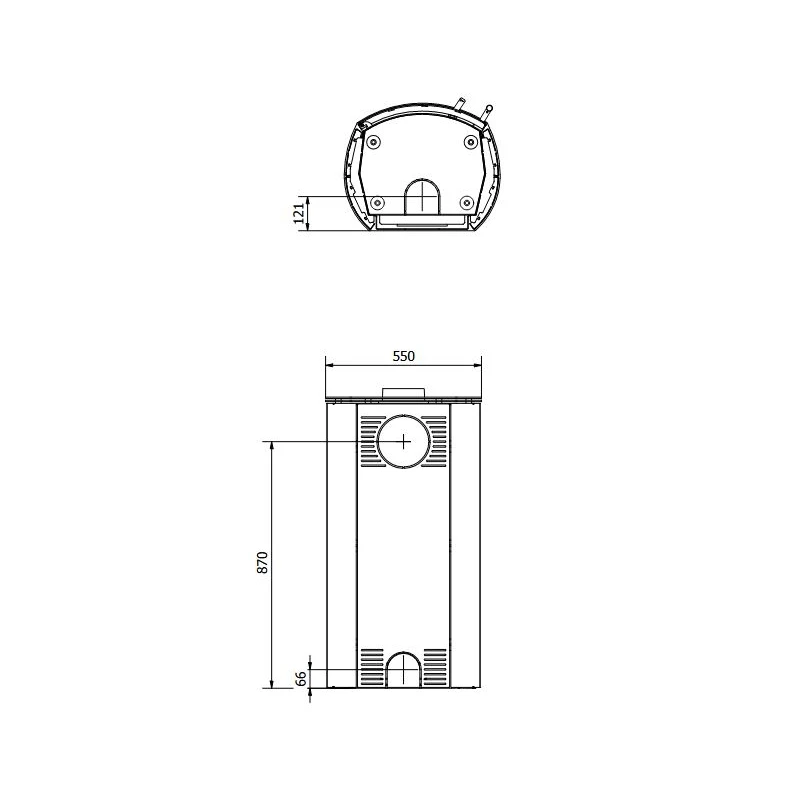 Der Rauchrohranschluss des Schwedenofens ist ganz flexibel sowohl oben als auch an der Rückseite möglich.